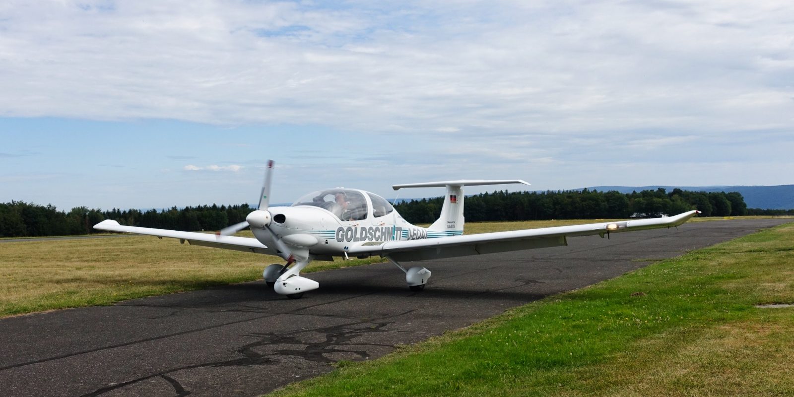 Neugierig gucke ich mir das kleine Flugzeug an. Ein viersitziges Leichtflugzeug DA 40 Diamond Star stand am Rand des Rollfeldes und erwartete uns. Groß ist es ja nicht … aber, so wird uns versichert, aufgrund des Wetter waren wenig bis keine Turbulenzen zu erwarten. Der Rundflug sollte angenehm werden.