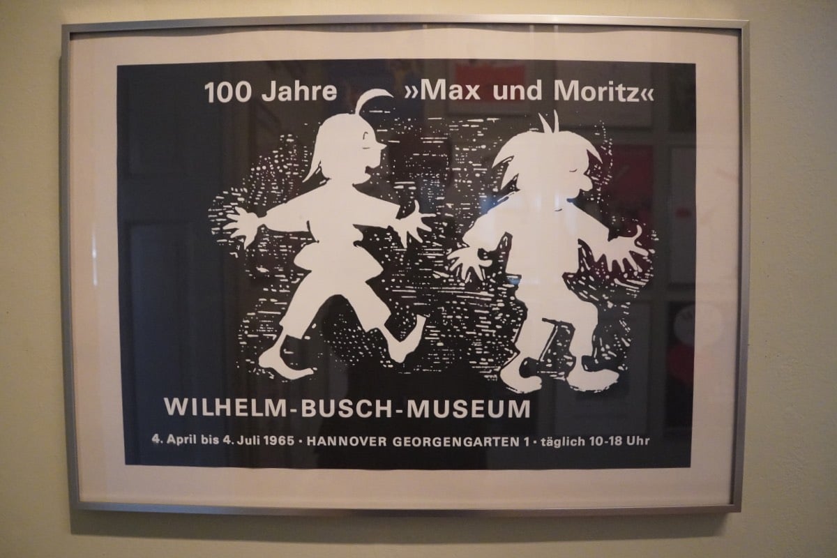 Die Dauerausstellung beschäftigt sich nicht nur mit Werken von Wilhelm Busch, sondern möchte auch die Arbeit der Gesellschaft vorstellen. So kann man zahlreiche Plakate entdecken, die auf vergangene Ausstellungen hinweisen. Während ich diese betrachtete fiel mir auf, dass ich viel verpasst habe – so entdeckte ich Hinweise aus eine Ausstellung meines „Lieblingskriminalisten Nick Knatterton“, eine Ausstellung zum Thema Loriot (die Waldmöpse Entdeckungstour in Brandenburg an der Havel und ein Besuch an seinem Grab in Berlin sind unvergessen) und eine Ausstellung der „Vater und Sohn Geschichten von e.o.plauen (Erich Ohser).