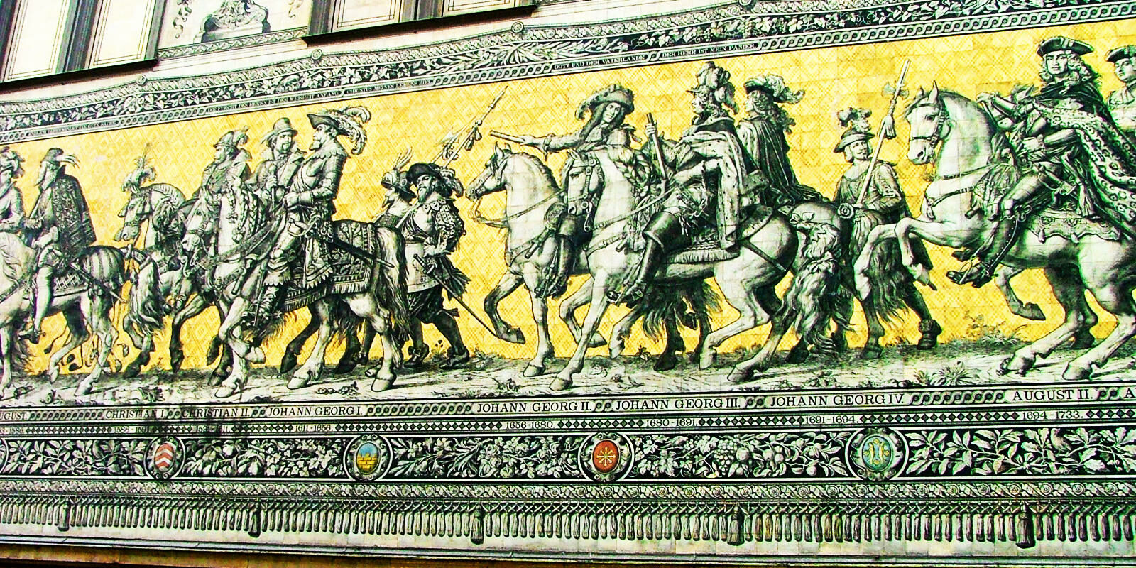 Der Fürstenzug ist ein riesiges Bild eines Reiterzuges. Es befindet sich in der Augustusstraße auf der Außenseite des Stallhofes des Dresdner Residenzschlosses.
