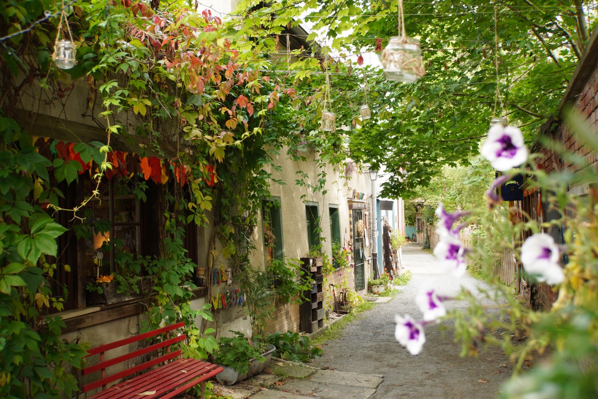 Ein bißchen kam es uns bei unserem Besuch so vor, als würden wir in eine andere Welt eintauchen. Die kleinen krumm und schief wirkenden Häuser wirken von außen wie ein verwunschener Ort. Überall entdeckt man liebevoll gestaltete Details, die darauf aufmerksam machen, dass hier die Kunst zu Hause ist.
