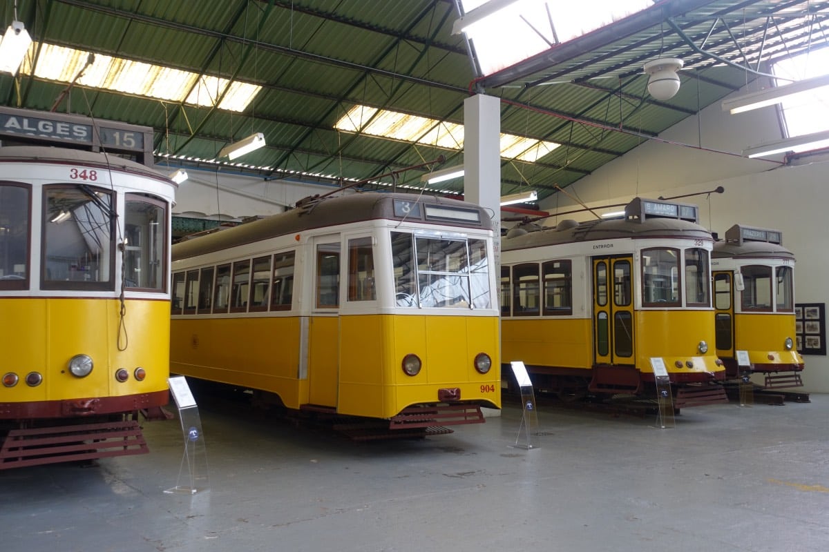 Die Wagenhalle im Straßenbahnmuseum Lissabon