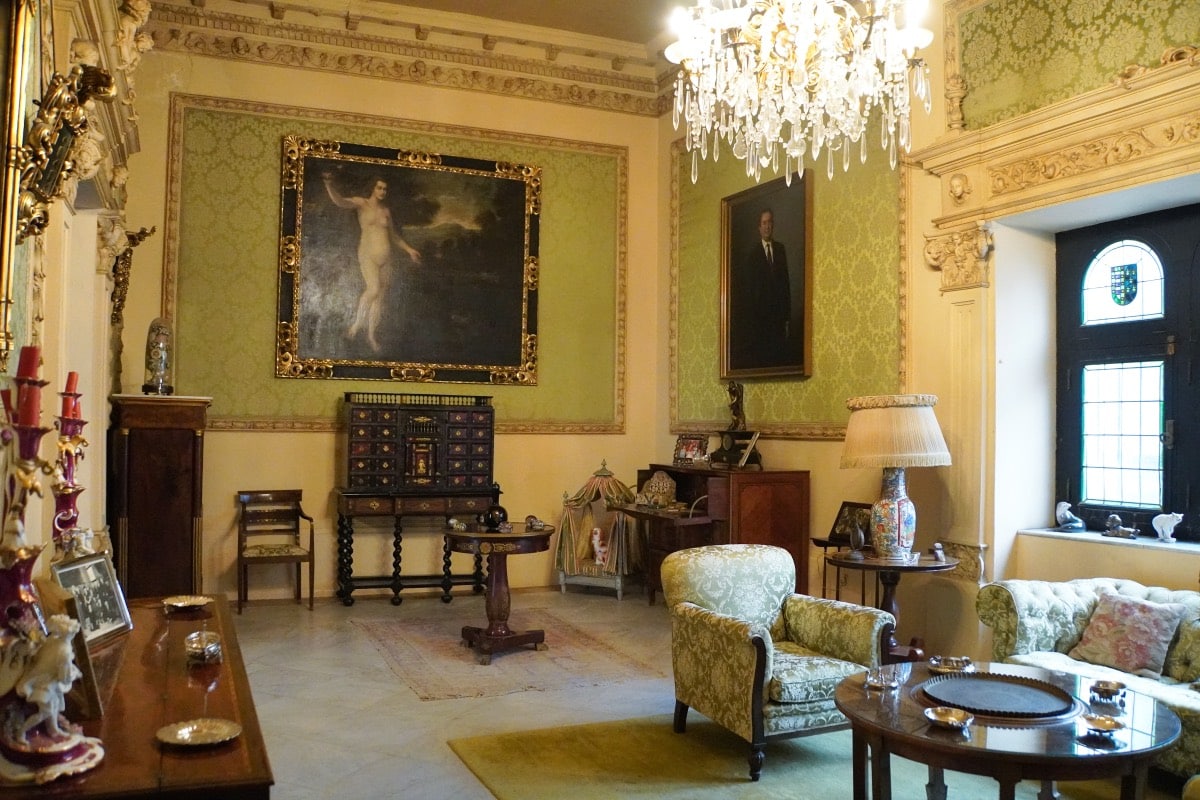 Neben den wunderschönen Möbeln hängen in den Räumen Gemälde aus der Kunstsammlung der Familie. Die Bilder stammen aus verschiedenen Epochen, von verschiedenen Malern und zeigen auch recht unterschiedliche Stilrichtungen. Das ein oder andere Bild hat mir schon recht gut gefallen.