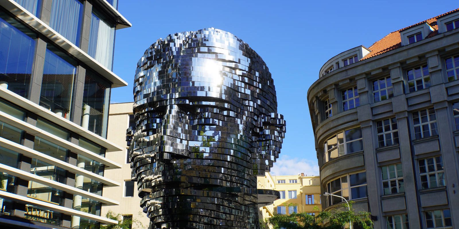 Der Kafka Kopf eins der umstrittensten Kunstwerke in Prag befindet sich in der Nähe der Altstadt.